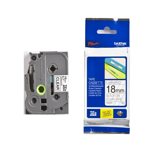 Brother P-Touch TZE-141 TZE-TAPE 18MM Şeffaf Üzerine Siyah Laminasyonlu Etiket